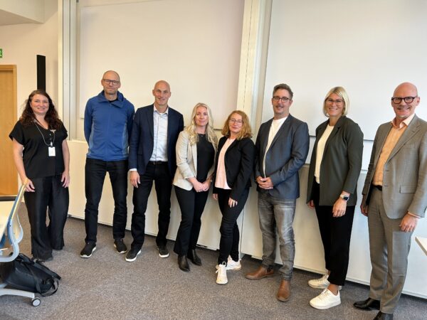 Lucia Crevani, professor vid Mälardalens universitet och kursansvarig (längst till vänster), tillsammans med Fredrik Munter, vd Mellanskog, och övriga föreläsare på kursen.