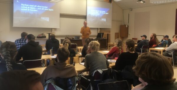 Per Lindblad, vd Landshypotek Bank och styrelseledamot i Svensk Kooperation, föreläste om kooperation för studenterna på Skogsmästarskolan.